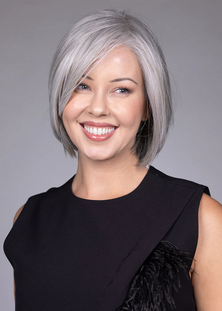 Dion by Belle Tress from the Icons Collection is a refined, modern bob with clean lines and soft movement. This heat friendly synthetic wig features a smooth, polished silhouette with gently layered ends that frame the face beautifully while maintaining a natural, effortless look.